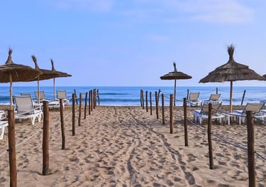 Rund 60 km entfernt liegt ein beliebter Badeort am Mittelmeer.